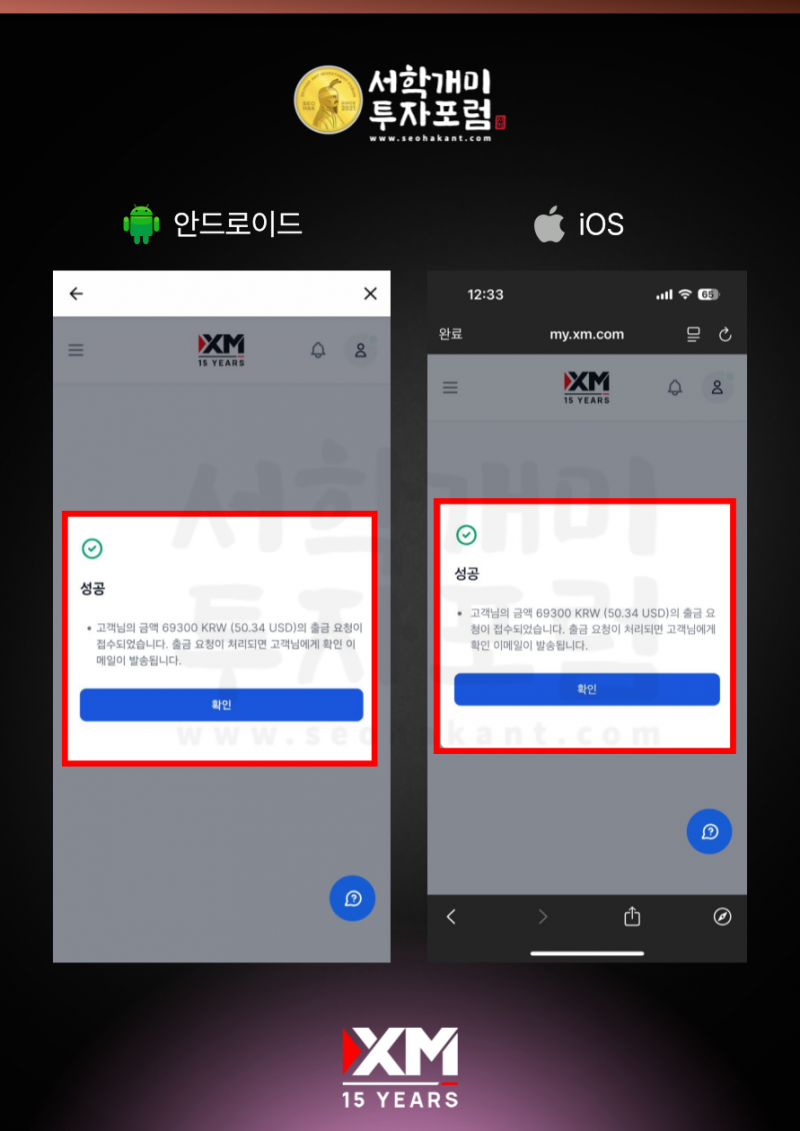 특히 해외 송금 과정을 복잡하게 거칠 필요 없이 XM 거래소 앱에서 바로 출금 신청을 하면 국내 은행 계좌로 편리하게 자금을 받을 수 있다는 점이 큰 장점입니다.