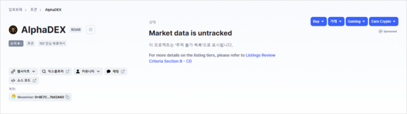 ▶ 알파덱스(AlphaDex, ROAR) 코인마켓캡 실시간 정보 확인하기