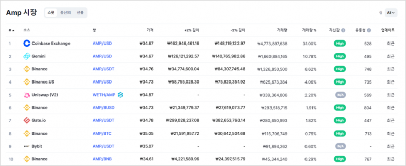 Amp(AMP) 상장 거래소