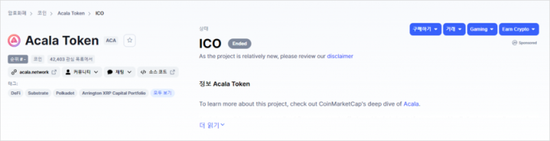 ▶ 아칼라(Acala, ACA) 코인마켓캡 실시간 정보 확인하기