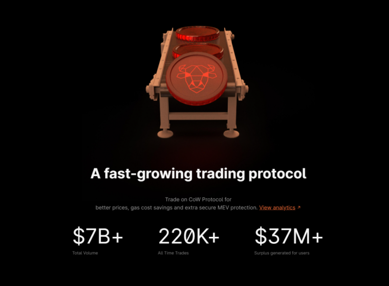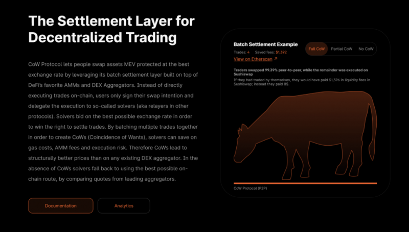 CoW Protocol(COW)은 다양한 온체인 유동성 소스에 대한 일괄 경매를 통해서 거래를 일치시키며,