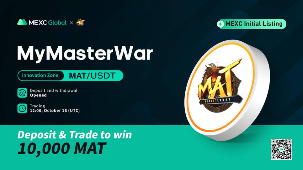 MEXC는 혁신영역에 마이 마스터 워(My Master War, MAT)를 상장하고 MAT/USDT 거래쌍을 공개합니다. 구체적인 내용은 아래와 같습니다.