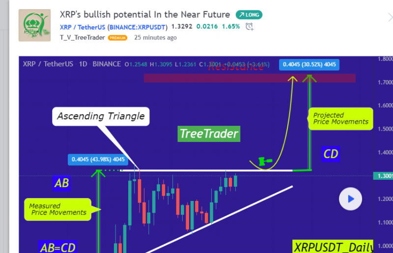 XRP/USDT is in an ascending Triangle which means the Price has a bullish Potential as much as the Measured Price Movement!( AB=CD ). as you take a Closer look you can see that the MACD Line is about to Cross The Signal line Upwardly! this is also a strong Bullish Signal as well! we just have to wait for the Break out to happen To take Easy profits!