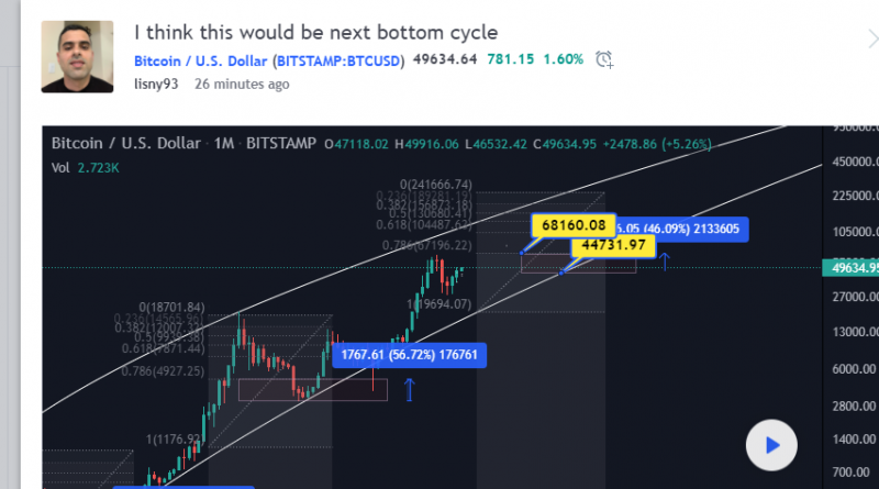 We should be around the 0.786 fib with some wicks below it but between 44000 and 68000.