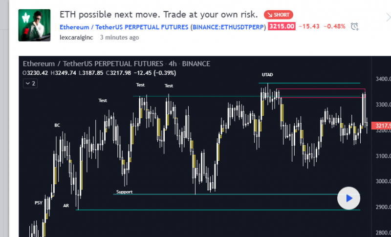 - For this chart, I notice that ETH is starting to consolidate and having a hard time making another Higher High