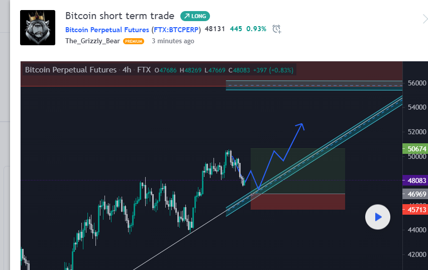 Looking to use limit orders to pick up a position a little lower on trend and then ride up and manage through previous resistance, but i feel if this trend stays respected then we could be heading into the new range of 50-60k offering a much higher RR on this trade.