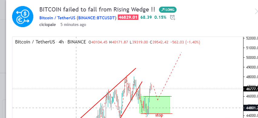 BITCOIN failed to fall from Rising Wedge pattern and will continue the trend !!