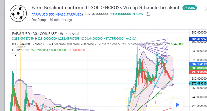원문링크: https://www.tradingview.com/chart/FARMUSD/QPX0uoX5-Farm-Breakout-confirmed-GOLDENCROSS-W-cup-handle-breakout/