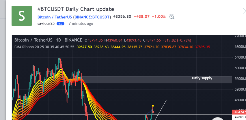 Like expected, the last daily candle closed above the resistance level ($42,601) and price is now bearish as we had a bearish divergence. Like i said, it will most likely restest the $42,601 level as it will be the first major support level before $40,889. Overall, price is still trading far above EMA ribbon and MACD is still bullish .