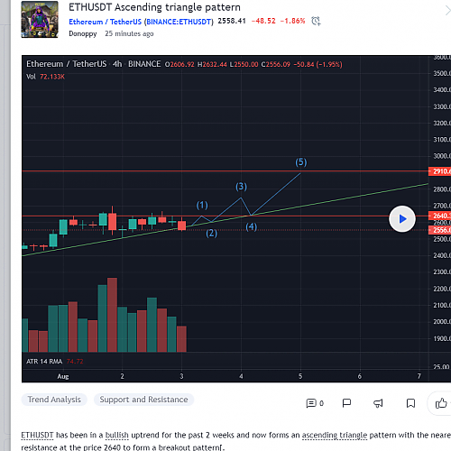 [코인] ETHUSDT 오름차순 삼각형 패턴 / ETHUSDT Ascending triangle pattern