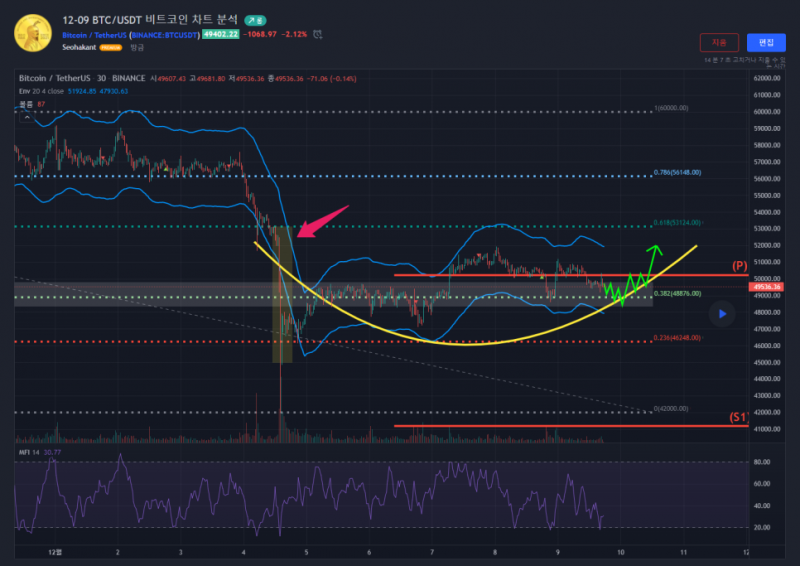 "2021-12-09 BTC/USDT 비트코인 차트 분석"