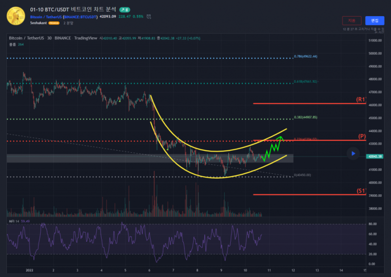 비트코인이 접시 모양을 만들며 서서히 반등중에 있습니다.