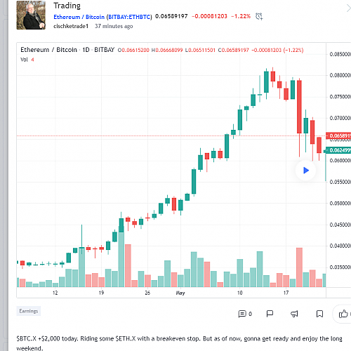 Ethereum / Bitcoincischketrade1$BTC.X +$2,000 today. Riding some $ETH.…