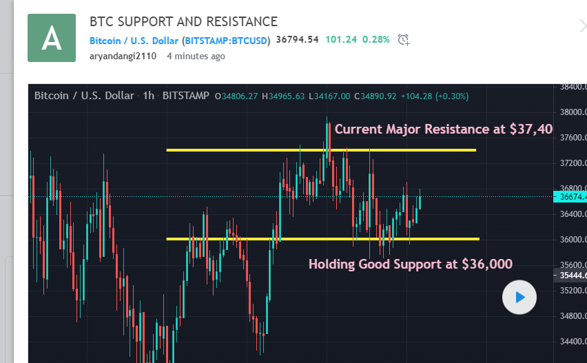BTC 지원 36,000명 및 저항 37,400명