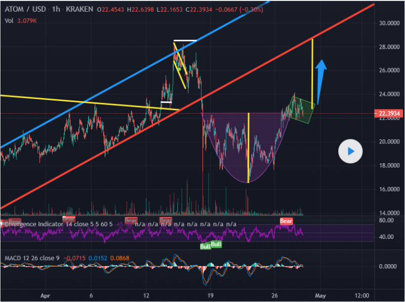 ATOM은 컵 & 핸들 패턴으로 거래되고 있습니다.