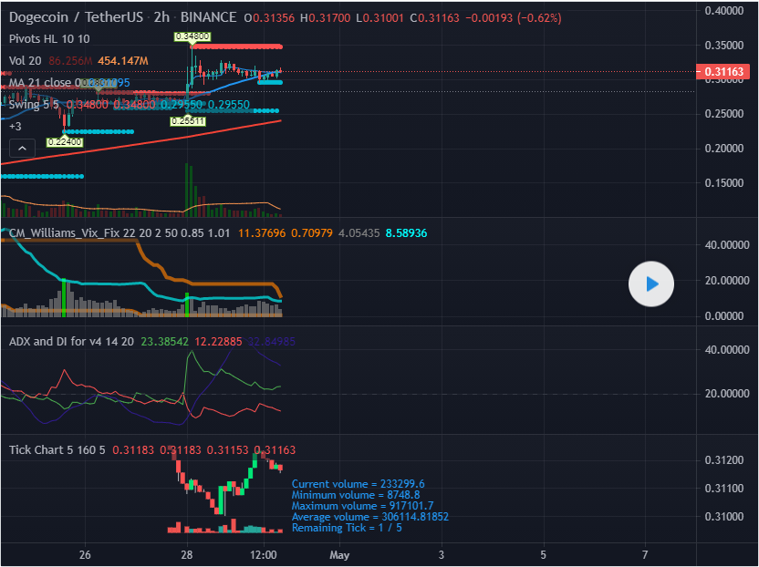 Dogecoin, just the cutest little underdog powerhouse that set's it's own trends and is always exhausted from running through Elon's mind. As you can see there is a clear bull flag forming and the retracement is nearing possibly already complete. Look for price movement towards .33