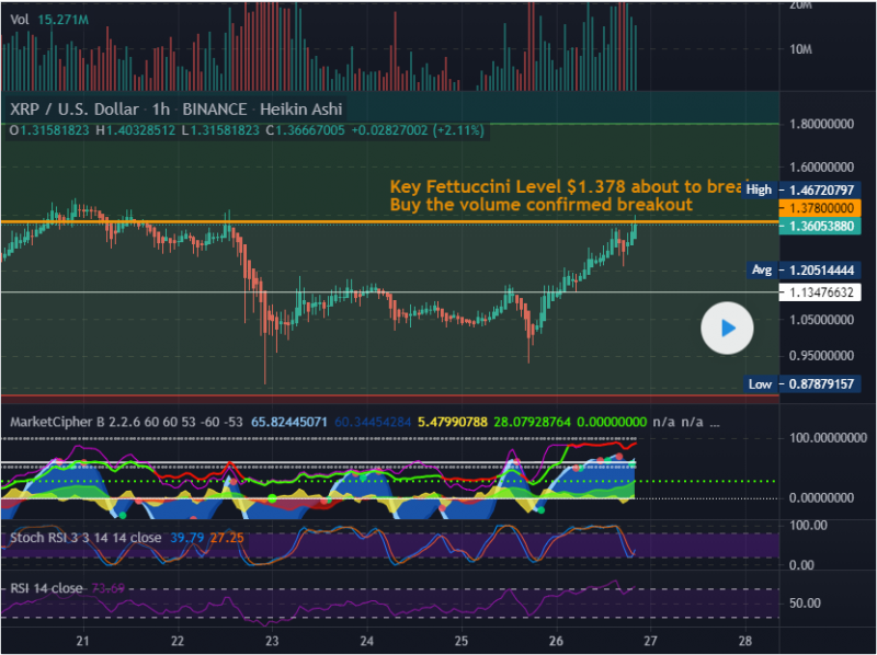 [코인] 주요 페투치니 저항 수준 $1.378 XRP 매수 돌파 / XRP Buy Breakout of Key Fettucci…