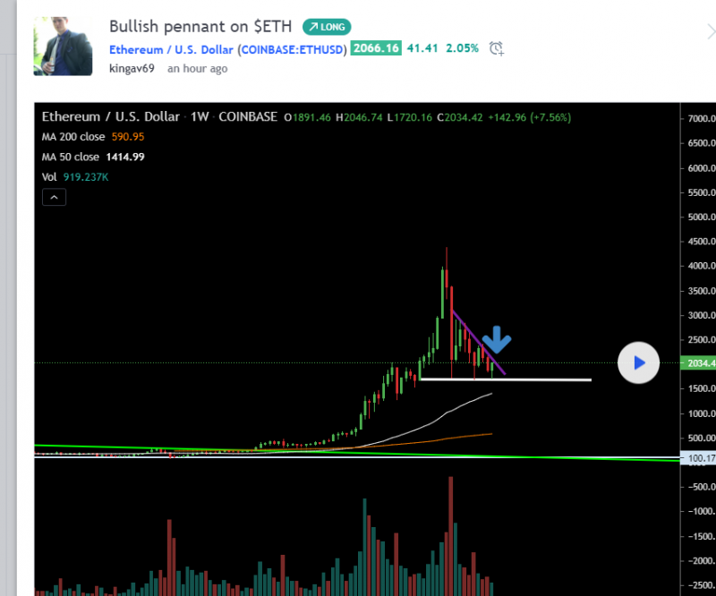 원문링크: https://www.tradingview.com/chart/ETHUSD/wnzwIpJ5-Bullish-pennant-on-ETH/