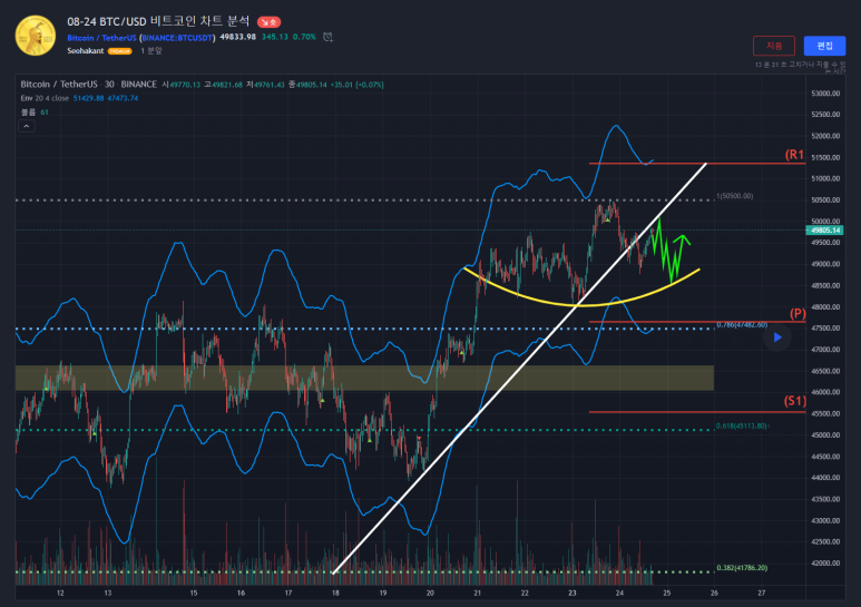 "2021-08-24 BTC/USDT 비트코인 차트 분석"