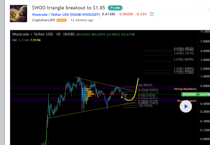 $WOO is currently consolidating above the 382 Fibonacci and just below the local POC. $WOO looks like it is preparing to for a nice upside move.