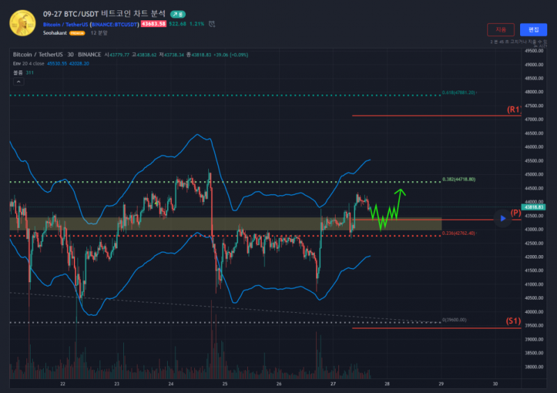 "2021-09-27 BTC/USDT 비트코인 차트 분석"