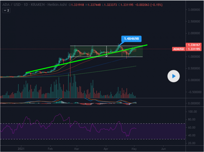 Many many people are very bullish on Ada. Unfortuently for me I had been bearish since the intial breakdown after expected breakout months back. This reasoning remains based off of longer term trend line that acted as support throughout the run up, that once it was broken on the mean pull back it has had a lot of issues gettinf above. When it can get back above and confirm support back on top, I can flip bullish once again. Ultimately until we find support confirmed on 1.48 cents I will be on the sidelines wirh this. No offense to any ADA bulls!