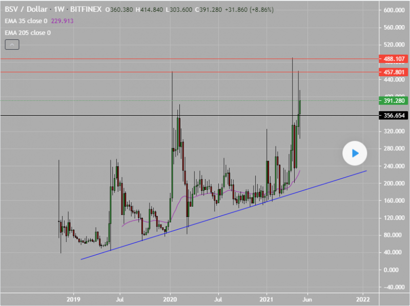 BSV는 현재 350달러로 저항보다 높다. 상승 삼각형의 꼭대기에 앉아 한동안 거래되었다. 그것은 이제 USD, BTC, ETH에 대항하여 탄력을 받고 있다. 나의 분석으로부터, 나는 500달러를 주요 기술적 돌파 지점과 심리적 이탈 지점으로 묘사할 것이다. 490주 전부터 차단되었지만 지금은 BSV가 기술적, 사회적 관심을 끌고 있습니다.