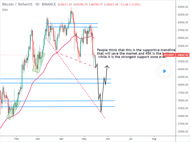 I am here to tell you that any serious dump will eat the 45k for breakfast. The only zones where you can buy some value are near the 30k level or 22k. And we need to choose wisely. The upcoming correction will be something similar like the crash of march 2020. But you can buy from the dottet trendline without any headache. We need to buy the dump, but the real dump!