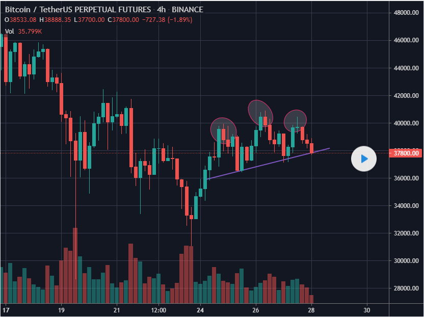 나는 강세기를 가정하고 다른 패턴들이 사라지는 것을 지켜봐왔다. 하지만 나는 H&S가 목선을 다시 꺾는 것을 볼 수 있다. 보장하지는 않지만 4시간 차트지만 베어리시 신호를 확인할 수 있습니다.