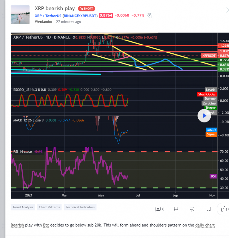 Bearish play with Btc decides to go below sub 20k. This will form ahead and shoulders pattern on the daily chart