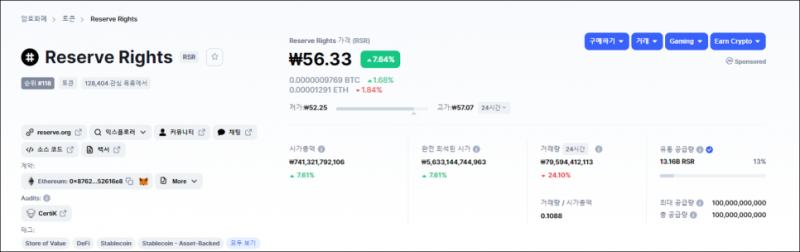 코인베이스에 상장이 성공하게 되면 가치가 상승하여 급등할 가능성이 높기 때문에 주시할 필요가 있습니다. 리저브라이트(RSR)는 리저브 네트워크에서 RSV의 가치를 안정화하는 역할을 하는 변동성 프로토콜입니다.