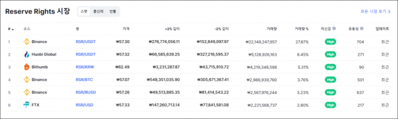 이 중 리저브 라이트(RSR)가 유일하게 Coinbase Custody, Listing Review Posts, Coinbase Ventures 세 가지 모두 포함되어 있는 것을 확인하실 수 있습니다.