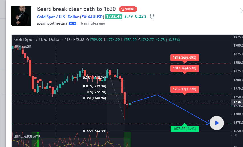 금의 방향은 이제 50% 피보나찌로 교정 상승으로 1758년의 대규모 일일 저항과 일치한다. 1680에서 1620까지 이상적인 드롭 존이 될 것입니다.