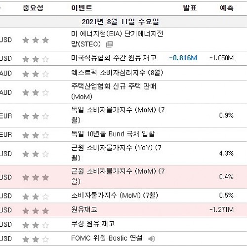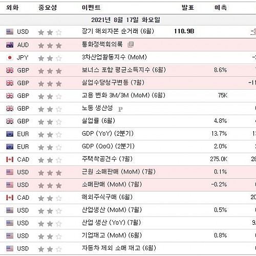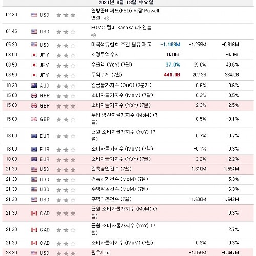 [21.08.19. 경제지표] 호주 고용변동 / 미국 …