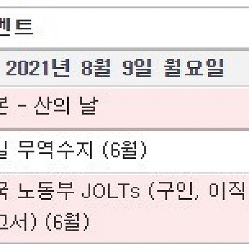 [21.08.09. 경제지표] 일본 도쿄증권거래소 휴장…