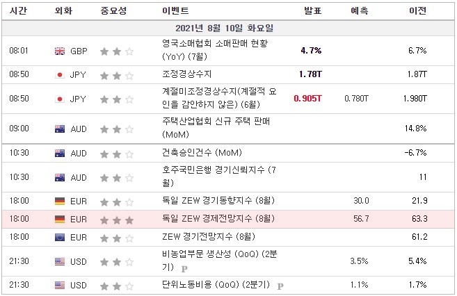 [21.08.10. 경제지표] 독일 ZEW 경제전망지수 / 미국 비농업 생산성, 에너지청(EIA) 단기에너지전망, 미국석유협회…