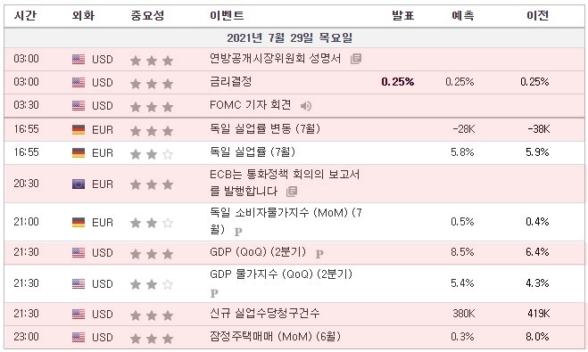 [21.07.29. 경제지표] 독일 실업률 변동 / ECB 통화정책 회의보고서 / 미국 GDP, 신규 실업수당청구건수, 잠정주…