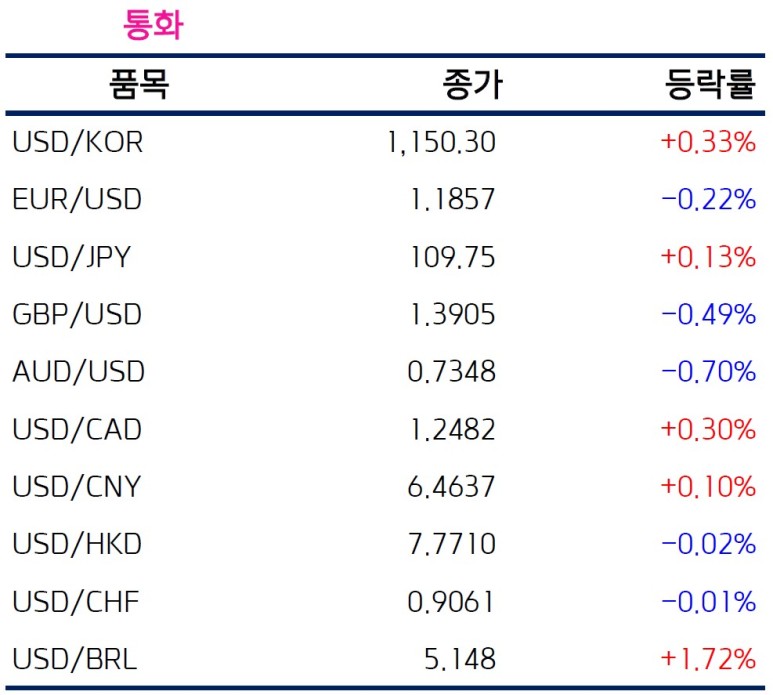 이에 앞서 달러화는 제롬 파월 연준 의장이 기존 통화정책을 고수한 연방공개시장위원회(FOMC) 회의 결과를 설명한 기자회견을 분수령으로 한 달간 이어왔던 강세 흐름을 일단락했다. 파월의장이 금리 인상과 관련해서는 지금은 이를 생각할 시기가 아니라고 선을 그으면서다. 연준은 FOMC 성명서에 자산 매입 규모 축소를 일컫는 테이퍼링에 대한 발판을 마련하면서도 시기를 특정하지 않는 등 비둘기파적인 행보를 이어갔다.