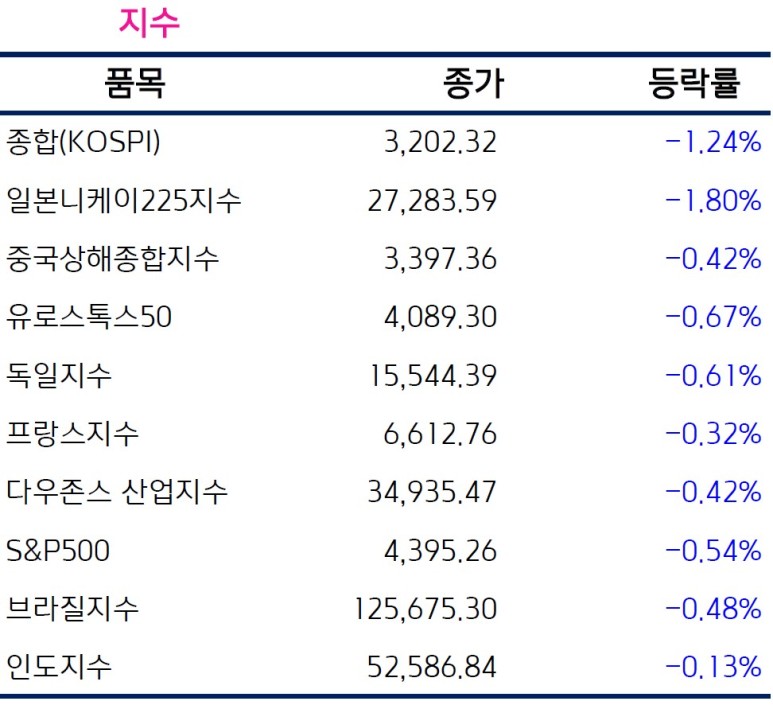 업종별로 임의소비재 관련주가 2.7% 하락해 낙폭이 가장 컸으며, 에너지, 유틸리티, 금융 관련주가 모두 하락했다. 자재와 부동산. 필수 소비재 관련주는 소폭 올랐다.