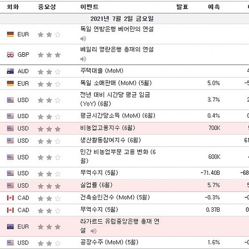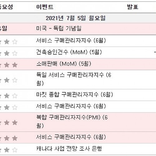 [21.07.05. 경제지표] 미국 뉴욕증권거래소 휴장…