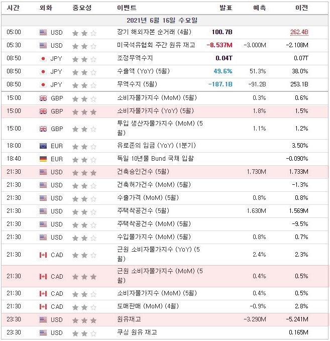 [21.06.16. 경제지표] 영국 소비자물가지수 / 미국 건축승인건수 / 캐나다 근원 소비자물가지수 / 미국 원유재고 / F…