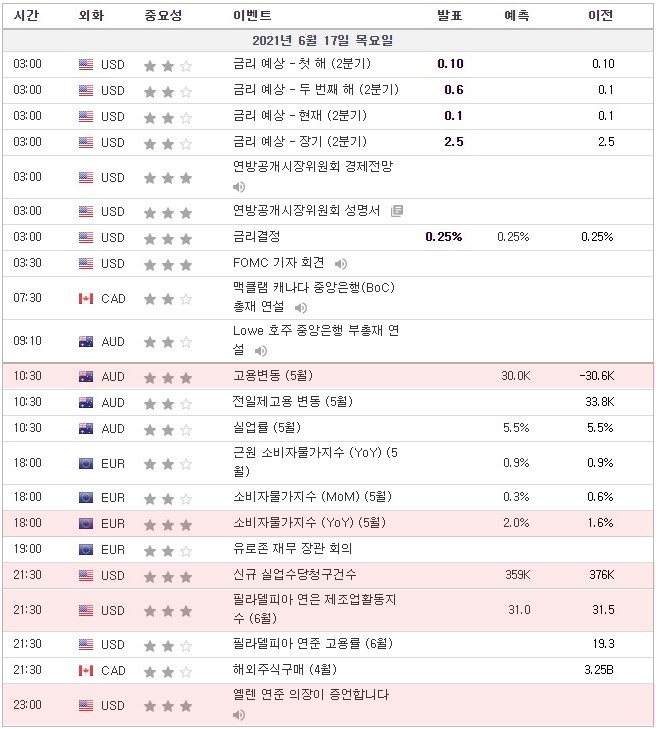 [21.06.17 경제지표] FOMC 결과, 호주 고용변동 / 유로존 소비자물가지수(CPI) / 미국 신규실업수당청구건수