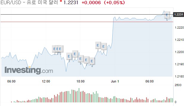 이날 유로/달러 환율은 0.3% 오른 1.2228달러,