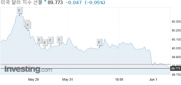 주요 6개국 통화 대비 달러 가치를 보여주는 달러인덱스(달러지수)는 전장보다 0.02% 내린 89.85를 기록했다.