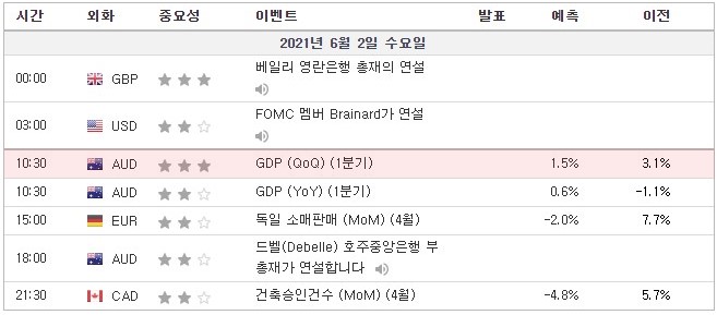 [21.06.02. 경제지표] 호주 GDP / 독일 소매판매 / 호주 드벨(Debeele) 호주중앙은행 부총재 연설 / 캐나다…