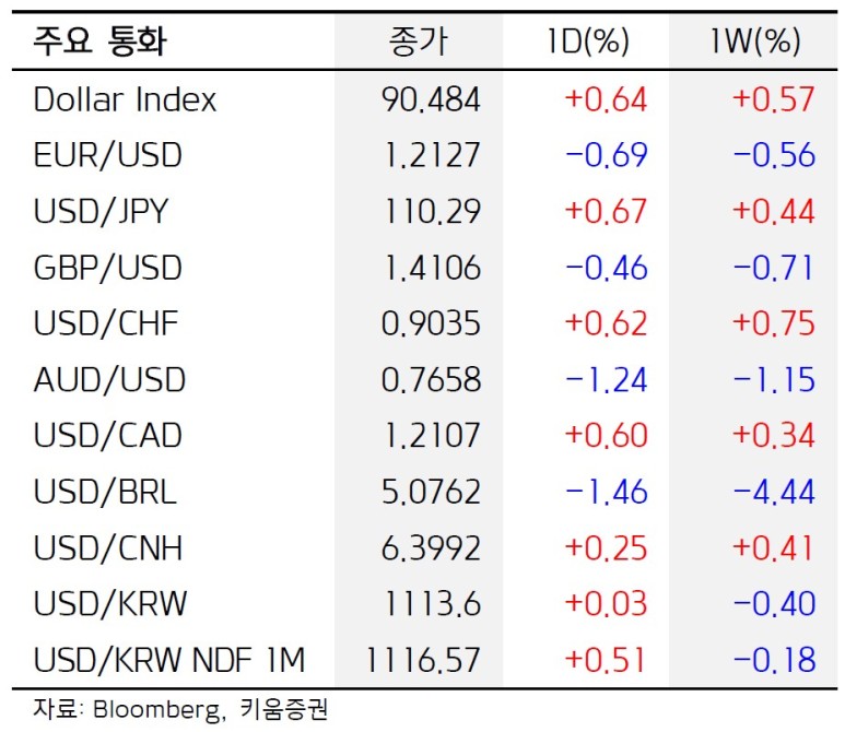 모두 달러화 약세에 베팅하기에는 부담스러운 소식이다. 연방준비제도(Fed·연준)가 강조했던 고용 부진까지 해소되면 당초 전망보다 초완화적인 통화정책이 빨리 종식될 수도 있어서다. 외환시장은 그동안 글로벌 경기회복에 대한 기대 등을 바탕으로 달러화 약세 쪽으로 기울었지만 최근 들어 변화의 조짐을 보인다. 미국의 각종 경제지표가 너무 가파른 경기 반등을 시사하고 있어서다.
