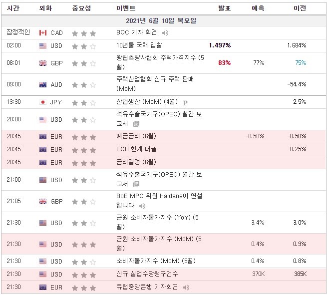 [21.06.10. 경제지표] 유로존 금리결정 / 미국 근원 소비자물가지수, 신규 실업수당청구건수 / 유럽은행 기자회견