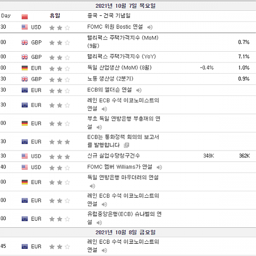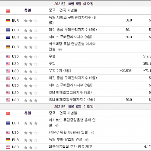 [21.10.05 경제지표]미국 ISM 비제조업 구매자지수, 라가르드 유럽중앙은행 총재 연설, 미국 주간 원유재고