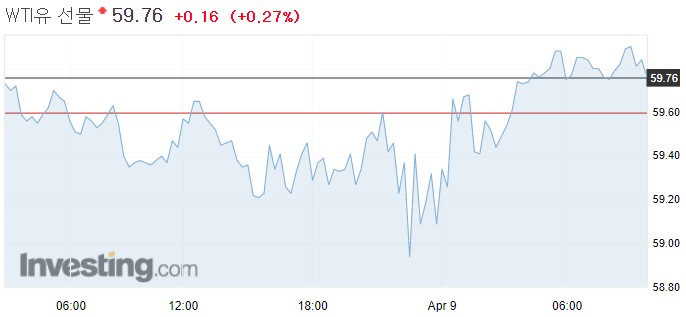 뉴욕상업거래소에서 5월물 서부 텍사스산 원유(WTI) 가격은 전장보다 0.17달러(0.3%) 하락한 배럴당 59.60달러에 거래를 마쳤다.