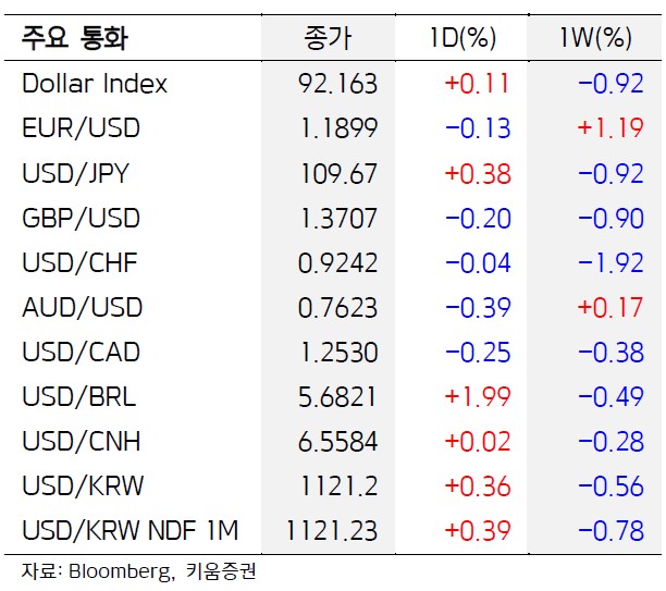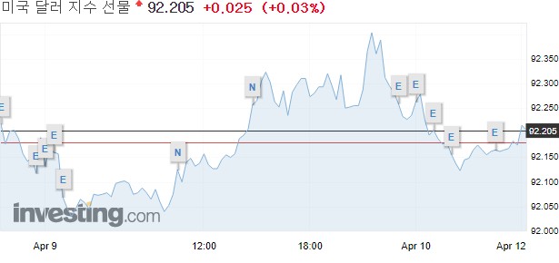 주요 6개 통화에 대한 달러 가치를 반영하는 달러 인덱스는 전장보다 0.09% 상승한 92.164를 기록했다. 달러인덱스는 주간 단위로 0.89% 하락했다.